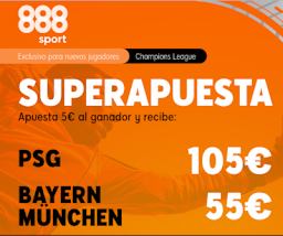 Limitada a 1 apuesta máxima de 5€ al ganador del partido PSG vs Bayern.